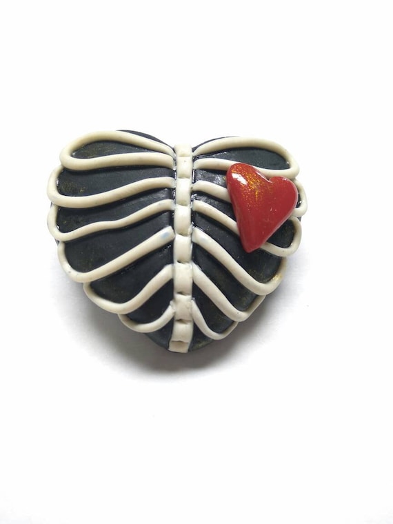 Halloween Brooch Black Heart Brooch Bones Brooch Polymer Clay Brooch Handsculpt Jewelry Best Gift Ideas Halloween Jewelry Brooch To Coat